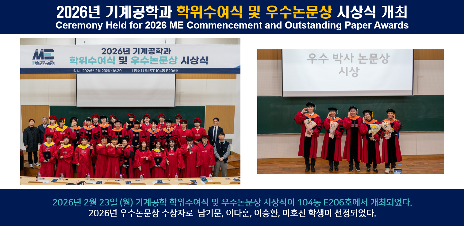 2026년 기계공학과 학위수여식 및 우수논문상 시상식 개최